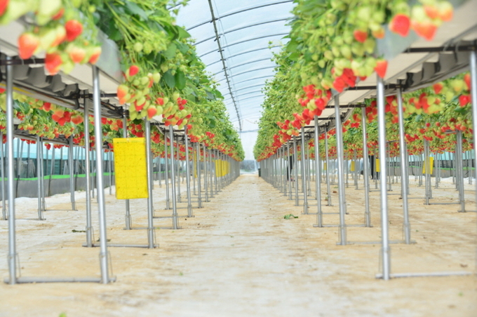 딸기 고설양액재배 기술은 사람이 선채로 작업할 수 있어 앉아서 하는 토경재배에 비해 작업 피로도가 훨씬 낮은데다 노동력 절감 효과도 50% 높은 것으로 알려졌다.