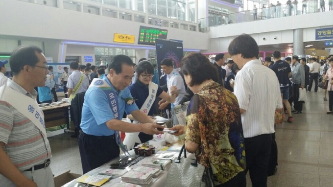 순창군이 21일 서울역 맞이방에서 열린 국내관광 활성화 공동캠페인에 참여해 순창관광지와 특산품 홍보에 비지땀을 흘렸다.