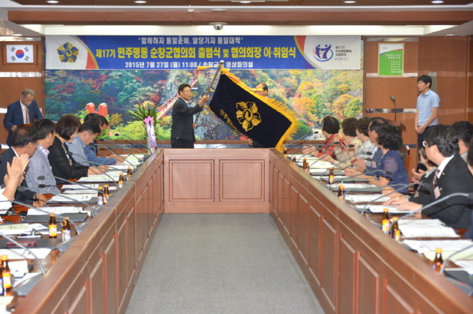 8천만이 행복한 통일시대를 만들어 낼 제 17기 민주평화통일자문회의 순창군협의회가 27일 군청 영상회의실에서 김성근 전임협의회장, 김성수 신임협의회장 이∙취임식과 출범식을 가졌다.