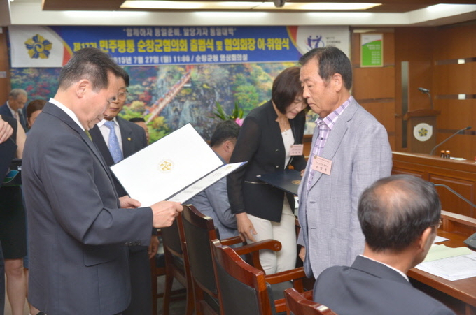 이날 이∙취임식에는 황숙주 군수, 이기자 군의장을 비롯 기관단체장과 위원 등 40여명이 참석한 가운데 대행기관장인 황숙주 순창군수가 광역∙기초의원으로 구성된 지역대표위원 9명과 직능대표위원 31명에 대해 위촉장 수여했다.