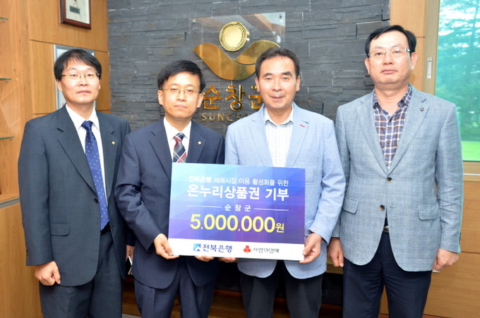 전북은행 순창지점(지점장 황인철)은 지난달 31일 순창군청을 방문해 500만원 상당의 온누리 상품권을 기탁했다.