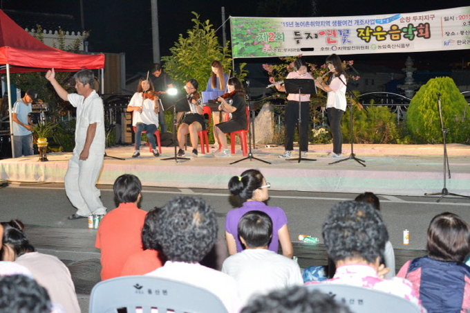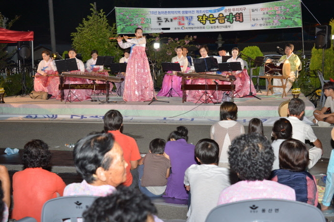 지난 29일 재외향우와 마을주민 등이 참석해 열린 두지연꽃 음악회는 두지지구 새뜰마을 사업의 성공 등을 기원하는 의미를 담았다.