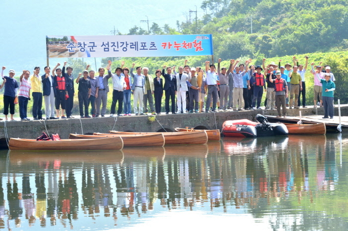 순창군이 섬진강변에서 카누 진수식을 갖고 수상레포츠 시대를 열었다.