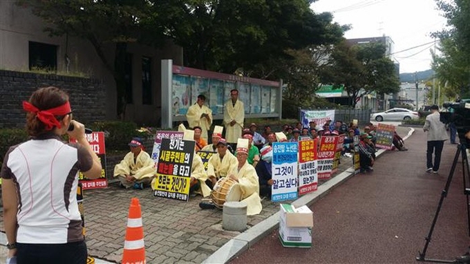 남원시 도통동 갈치마을 주민 50여명은 24일 남원시청과 한전 남원지사 앞에서 송전탑건설 반대 집회, 시위를 벌였다.