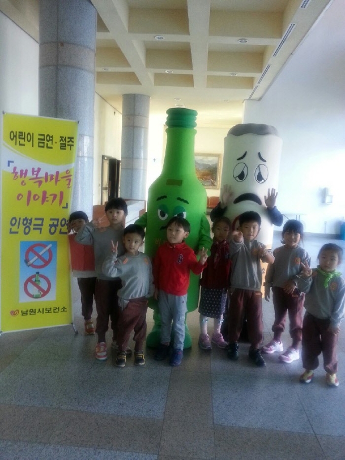 7일 남원시보건소(소장 최태성)는 춘향문화예술회관 대강당에서 오전 10시부터 2회에 걸쳐 인형극 전문가를 초빙 흡연 및 음주예방을 위한 인형극 '행복마을 이야기'라는 주제로 공연을 펼쳤다. 이날 인형극 관람엔 지역 만3세~5세 어린이 1,200여 명이 참여했다.