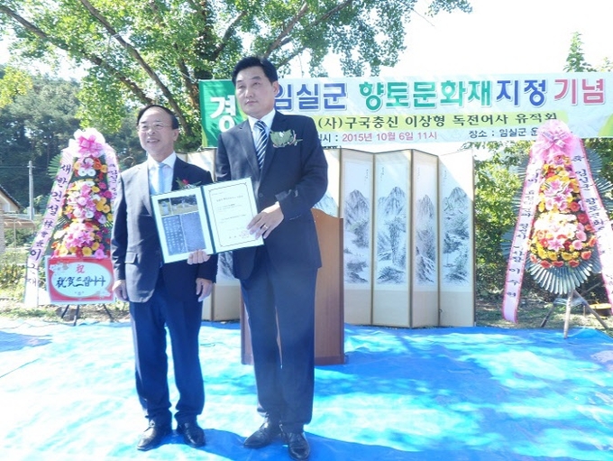 임실군이 향토문화유산 기념물 제1호 '이상형 묘비'의 지정서 교부 및 고유제를 임실운암면에 소재한 운종리 천묵재 이상형(1585~1645) 묘역에서 개최했다.