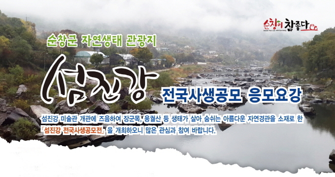 순창군이 천혜의 비경을 간직한 섬진강의 아름다움을 예술작품으로 표현하는 섬진강 사생공모전을 연다.