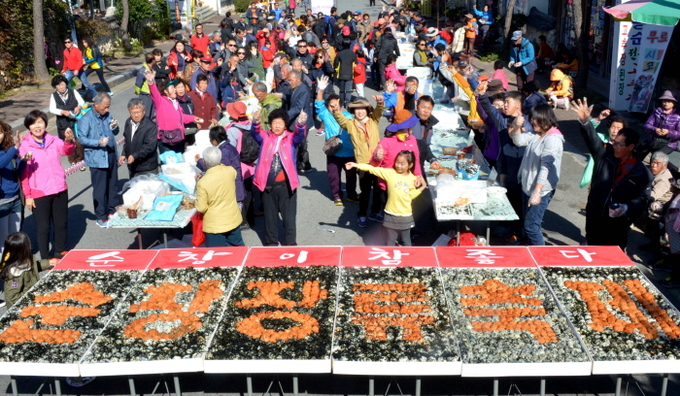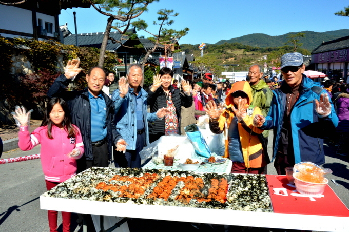 황숙주 순창군수와 이남 축제위원장을 비롯 300여 명의 관광객이 참여해 '순창장류축제' 글씨가 써진 대형식탁위에 참기름으로 버무린 밥에 순창전통 장아찌와 김을 넣어 만든 주먹밥을 만들었다.