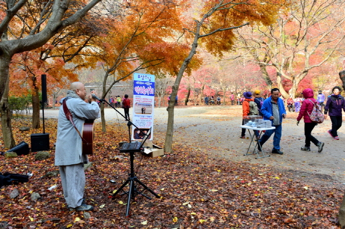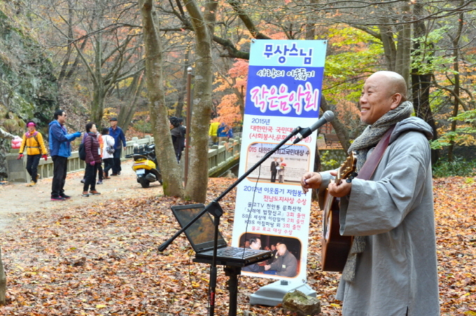 무상스님은 11월 말까지 익숙한 올드팝송과 가요를 부르며, 아름다운 강천산을 찾은 등산객들의 발길을 붙잡았다.