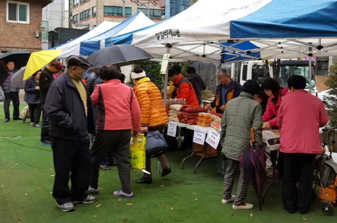 동계면 주민자치위원회(위원장 유일용)는 지난 13일 자매결연을 맺고 있는 서울 동대문구 장안1동(동장 김공일) 샛별공원에서 직거래장터를 열었다.