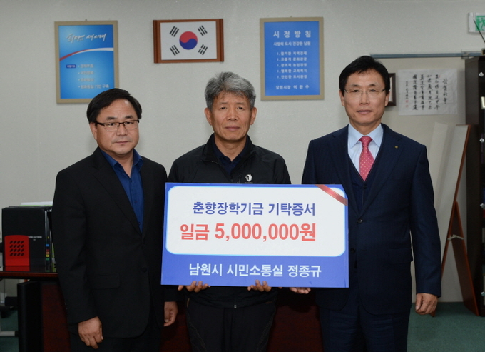 남원시청 시민소통실 정종규 주무관(57․사진)이 500만원을 춘향장학재단에 기탁했다.