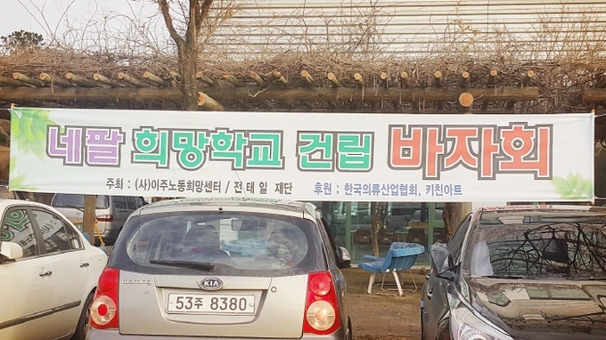 바자회에 ‘네팔 희망학교 건립 바자회’라는 현수막이 내걸렸지만 실제로는 입점업체들이 돈벌이 수단으로 장사를 한 것으로 알려졌다.