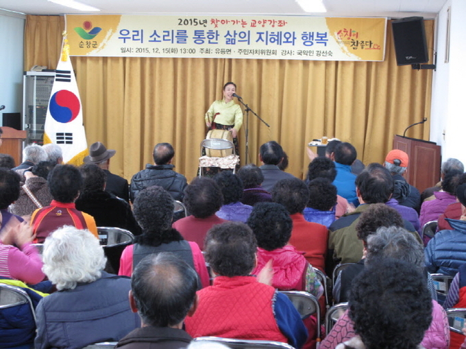 순창유등면(면장 정성휘)이 국악인 강선숙 명창을 초청해 ‘우리 소리를 통한 삶의 지혜와 행복’이라는 주제로 교양강좌를 실시했다.