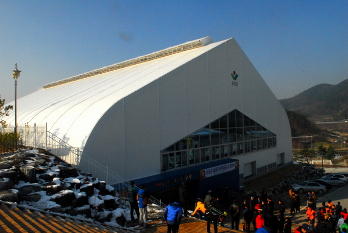 이번에 완성한 다목적 돔구장은 안개가 많은 순창지역 특성을 감안해 가볍고 견고하며 녹슬지 않는 알루미늄 구조로 만들었다.