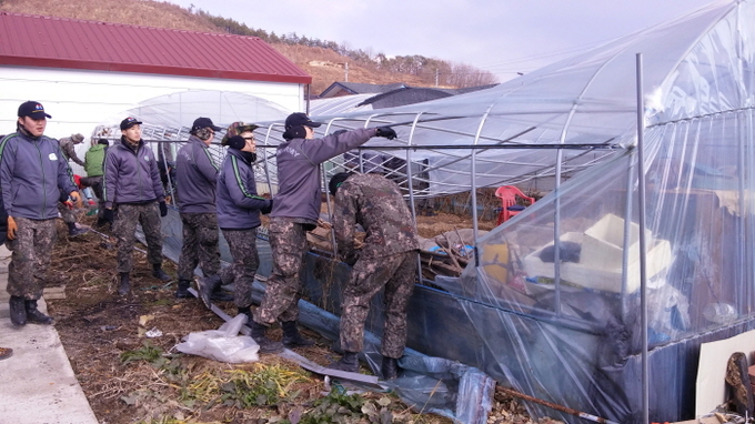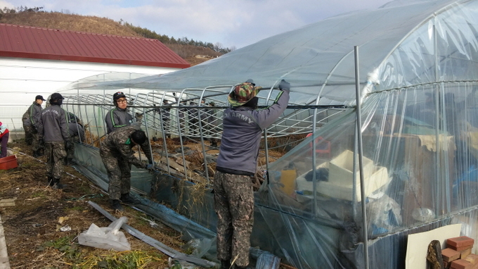 피해 농가들은 “무너진 비닐하우스를 철거할 엄두가 나지 않았다”며 “장병들의 도움으로 철거할 수 있어 매우 고맙다”고 말했다.