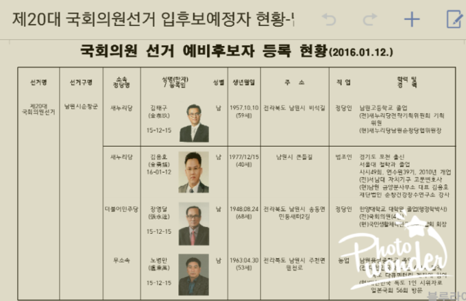 타의든 자의든 남원순창지역 예비후보자로 거론되는 후보는 남원지역만 10여 명 이상 거론되고 있으며, 순창지역 출신 인사는 없는 것으로 확인되고 있다.