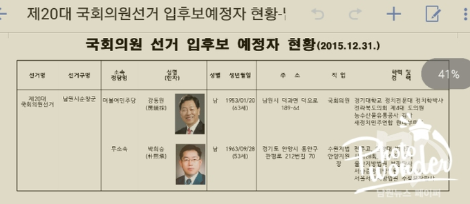 이 결과 지난 12일 김용호 예비후보가 새누리당 후보로 김원종 예비후보가 안철수 신당으로 등록을 마쳐 모두 8명이 총선체제 준비를 마쳤다.