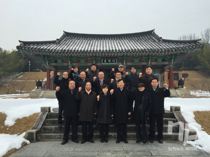 | 28일 선관위 등록 직후 남원시 향교동에 소재한 만인의총을 참배하고 총선승리 결의를 다지고 있다. |