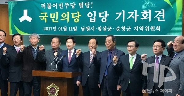 남원시의회 강성원, 김성기, 왕정안, 김승곤 의원과 순창군의회 조순주 의원은 지난 11일 도의회 브리핑룸에서 기자회견을 갖고 국민의당 입당을 선언했다.