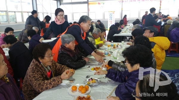 남원시자원봉사센터가 17일 노암동 게티트볼장에서 떡국나눔 봉사활동을 펼쳤다.