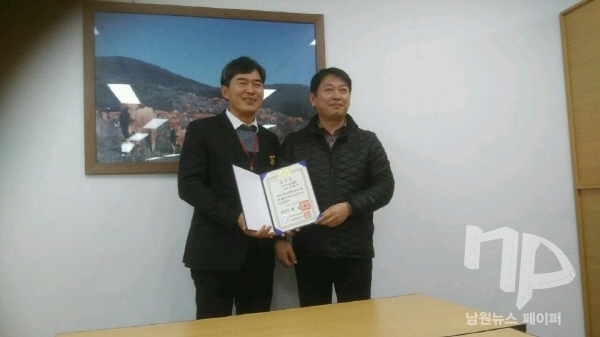 남원 에코바이오영농조합법인 이영수 대표가 축산 선진화 유공으로 대통령 표창을 받았다.