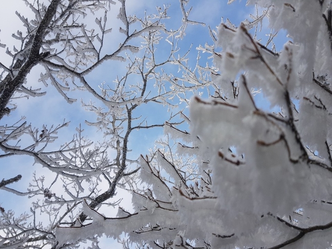 ▲2019년 1월 23일 낮 12시 40분께 지리산국립공원 바래봉(1,165m)에서 정령치(1,172m)가는 큰고리봉(1,304m) 길목에 핀 눈꽃. /사진=최봉오 기자