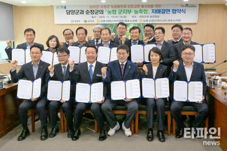 (순창=타파인) 이상선 기자 = 순창군과 담양군 농·축협이 상생협력 자매결연 협약을 공식 체결하며 두 지역 농업의 새로운 전환점을 열었다.