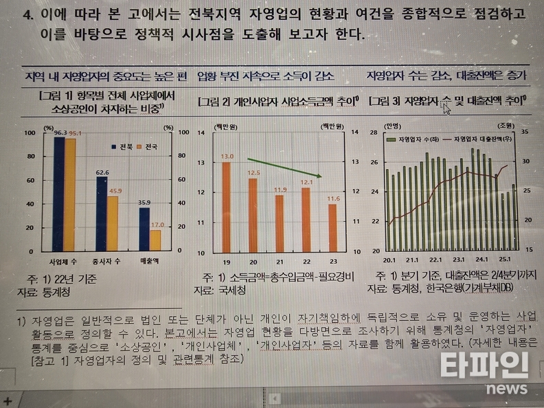 보고서는 “전북 자영업 상황은 결코 단기 경기침체 수준이 아닌 구조적 위기”라며, “지속가능성 확보를 위한 근본적인 대책이 시급하다”고 강조했다.