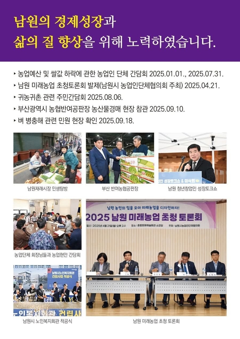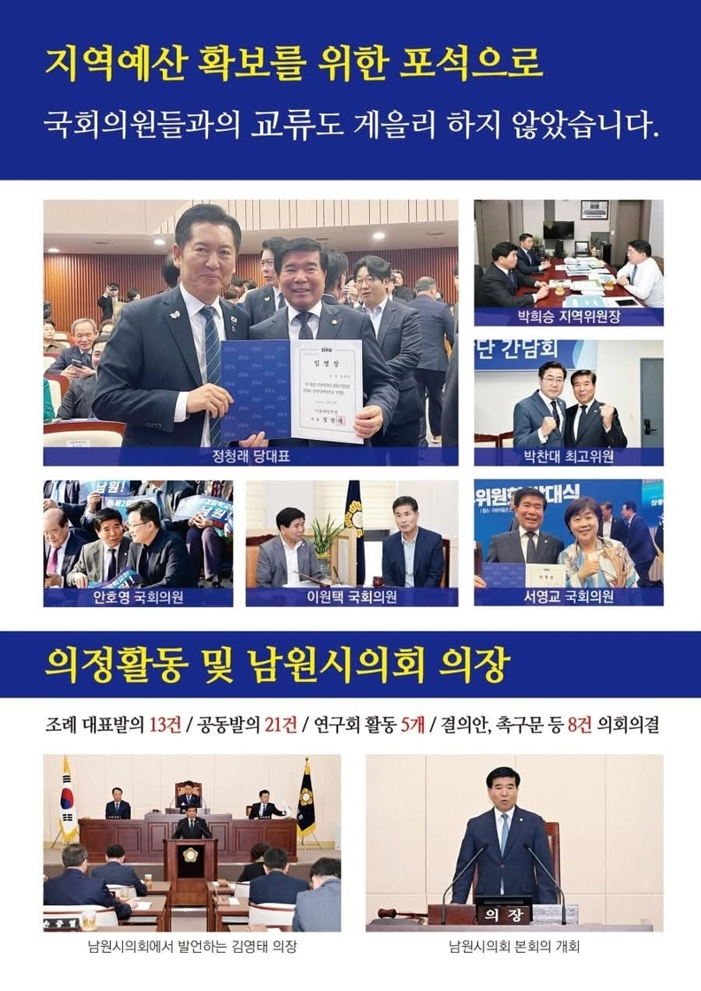1일 김 의장은 지난 1년 사진 결산 보고를 통해 “시민 한 분 한 분의 목소리를 더 가까이 듣기 위해, 남원 곳곳의 현장을 발로 뛰며 문제를 찾고 해법을 만드는 데 집중했다”고 강조했다.