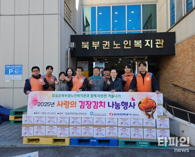(한전=타파인) 이상선 기자 = 한국전력공사 임실지사(지사장 김명진·노조위원장 박종성)가 지난 3일 임실 북부권 노인복지관과 함께 지역 어르신들의 따뜻한 겨울나기를 돕기 위한 ‘사랑의 김장나눔’ 봉사활동을 진행했다.