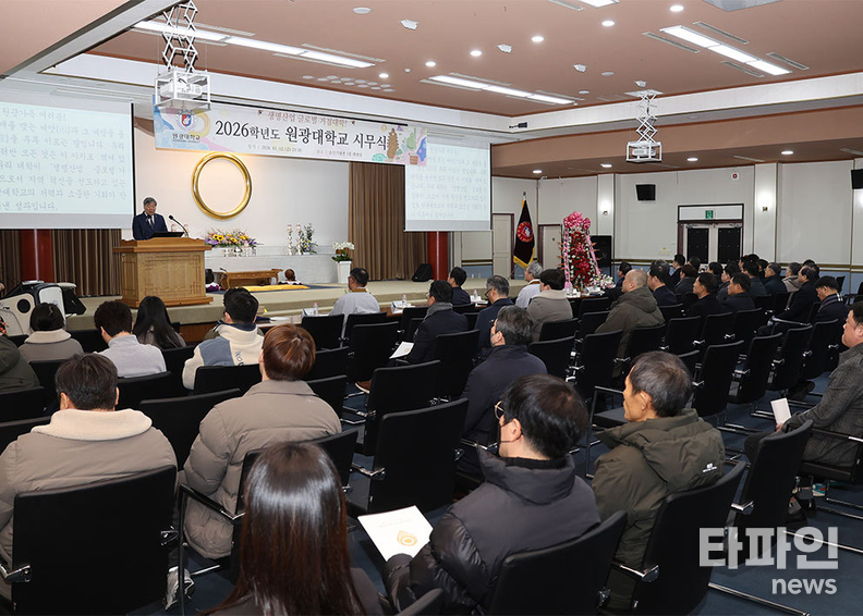 (교육=타파인) 김진주 기자 = 원광대학교가 2일 오전 교내 숭산기념관에서 2026년도 시무식을 열고 새해 출발을 알렸다.
