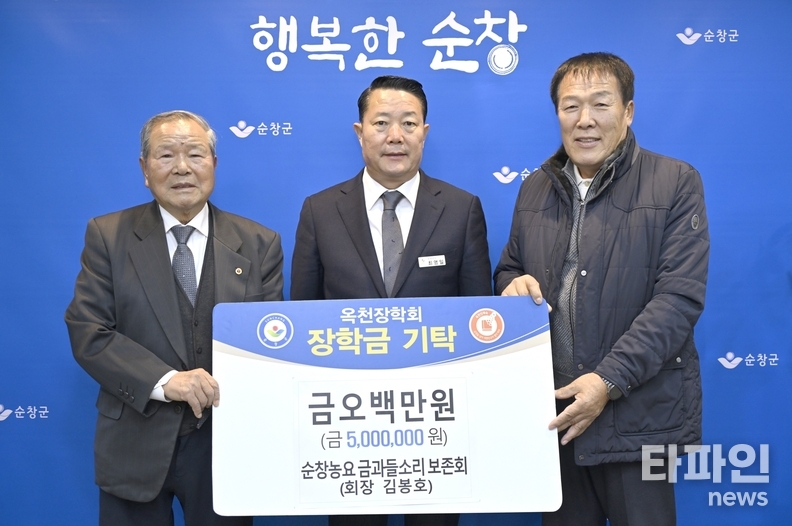 순창군은 최근 순창농요 금과들소리 보존회(회장 김봉호)가 순창군옥천장학회에 장학금 500만 원을 기탁했다고 밝혔다. 기탁금은 지역 내 학생들의 학업 지원에 사용될 예정이다.