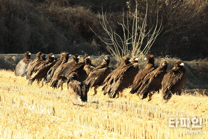 (남원=타파인) 이상선 기자 = 남원시 보절면 신파제 일원에 천연기념물 독수리 100여 마리가 2년 연속 겨울을 나기 위해 찾아오며 장관을 연출하고 있다.