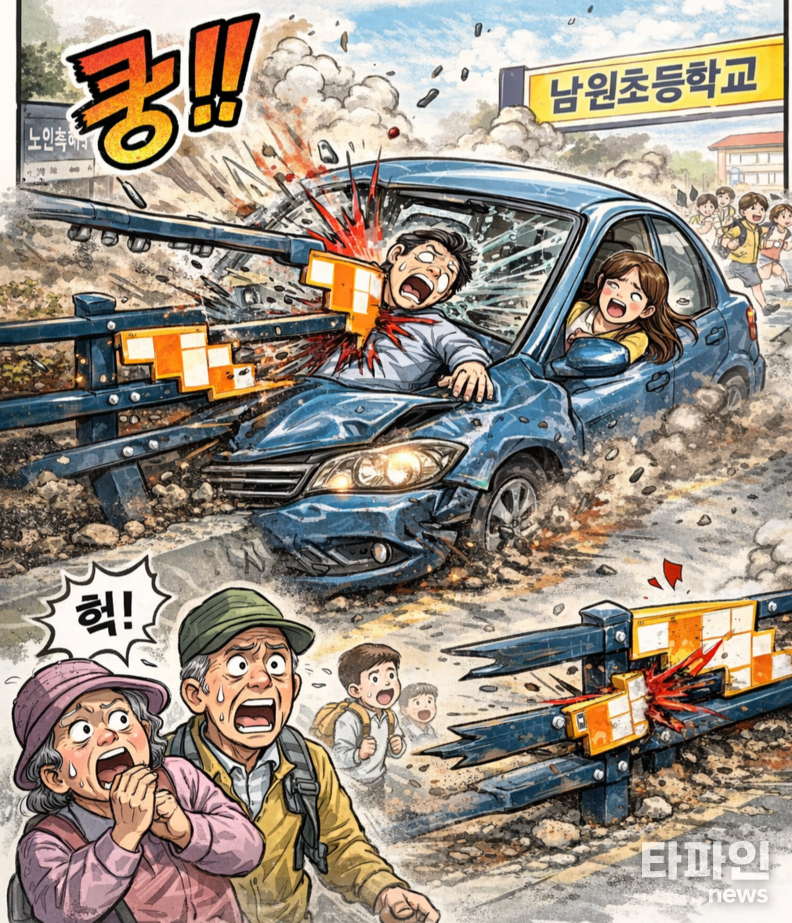 초등학교 앞 도로에 설치된 ‘어린이 안전가드(휀스)’가 사고 발생 시 보행자를 보호하기는커녕 운전자와 탑승자에게 치명적 위험을 가할 수 있는 구조로 시공된 사실이 확인되면서, 현장 안전 논란이 확산되고 있다.