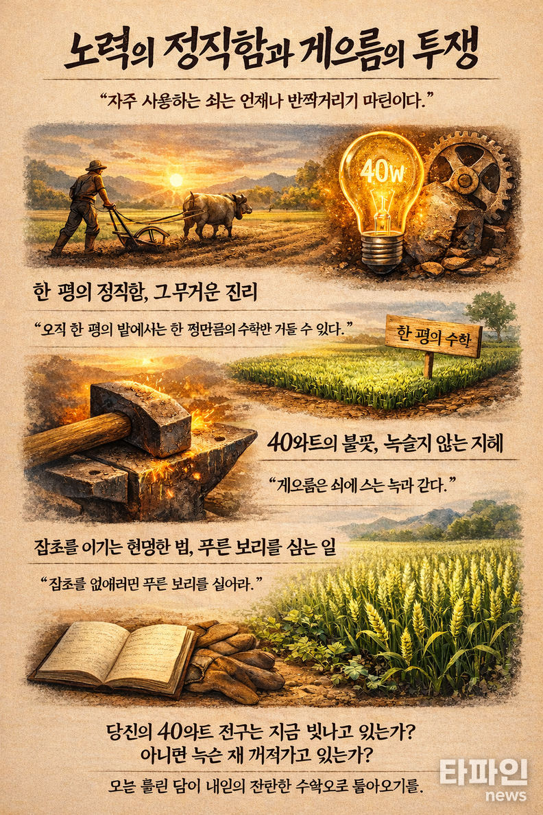 오늘 흘린 한 방울의 땀이 내일의 가장 찬란한 수확으로 돌아오기를 믿으며, 우리는 다시 쟁기를 잡아야 한다.