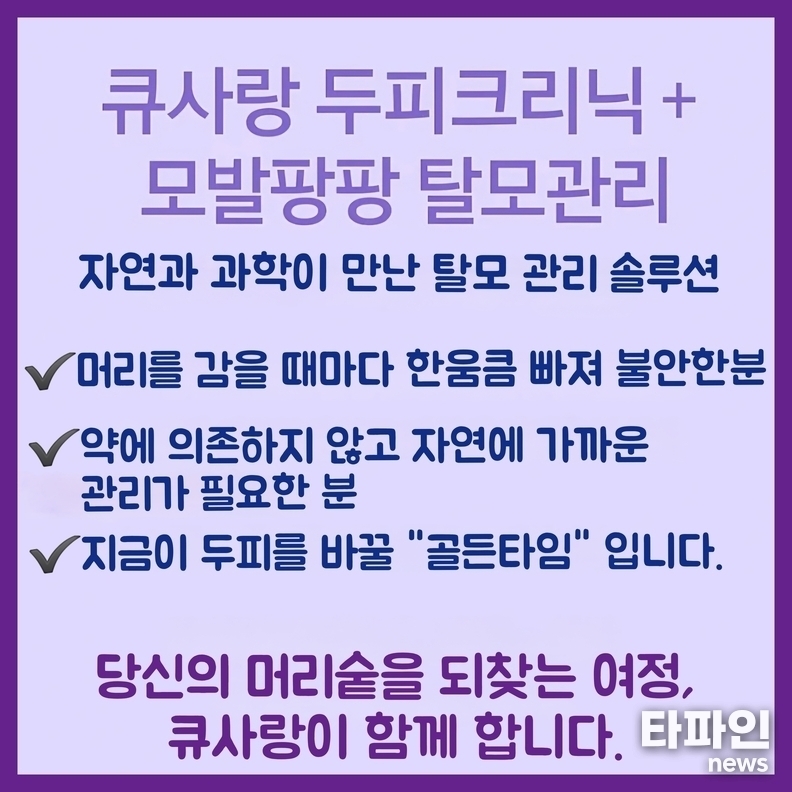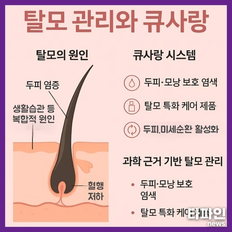 한편 큐사랑은 전국적으로 두피관리와 천연미네랄 염색을 결합한 전문 프로그램을 운영하며 탈모 관리와 모발 건강 시장에서 입지를 넓혀가고 있다.