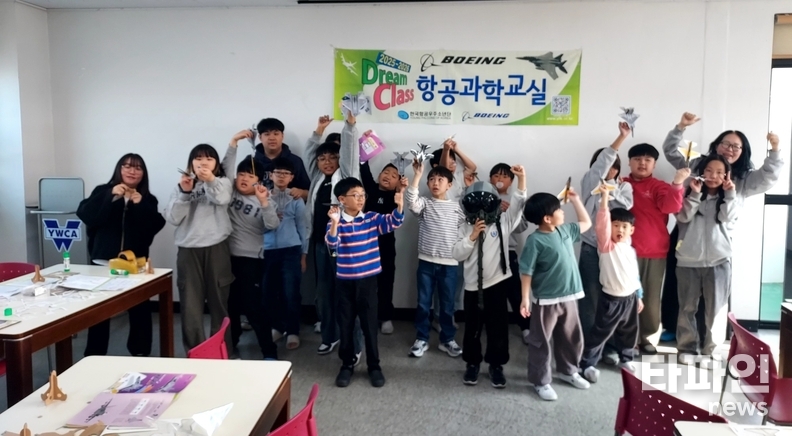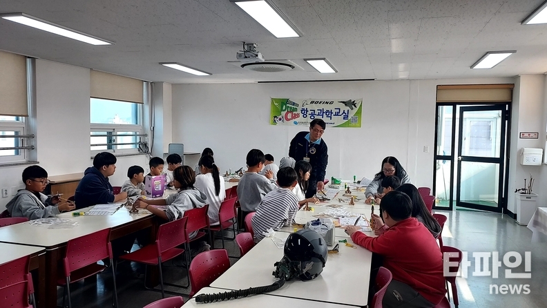 25일 센터 다목적실에서 열린 보잉 드림클래스 항공과학교실에는 신나는지역아동센터 청소년과 지도교사들이 참여해 KF-21 Boramae(케이에프21 보라매) 전투기의 구조와 원리를 배우는 교육 프로그램이 진행됐다.