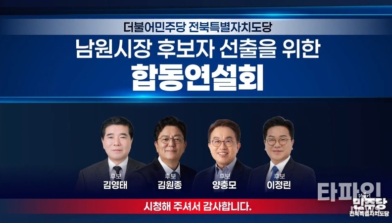 (남원=타파인) 이상선 기자 = 더불어민주당 남원시장 경선이 본격적인 정책 경쟁 국면에 돌입했다.