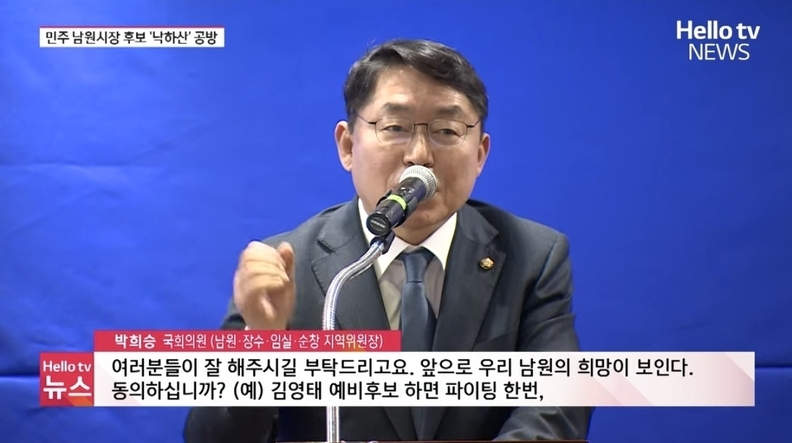 김 후보 개소식에서 지역위원장인 박희승 의원은 축사를 통해 “김영태 후보를 뽑아달라는 말은 하지 않겠다”며, “다만 김 후보가 얼마나 성실하고, 얼마나 남원을 위해 뛰어온 사람인지 칭찬만 하겠다”고 말했다.