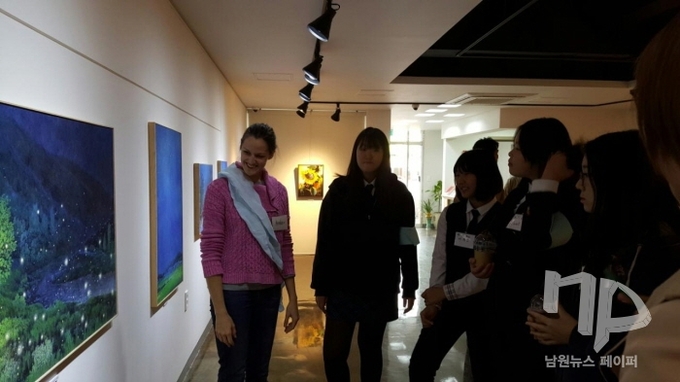 특히 예가람길에 전시 된 작가의 작품을 보면서 원어민 강사와 학생이 서로 회화로 느낌점을 토론하고 찻집에서 한국 전통의 다도 문화를 체험하는 현장학습을 펼쳤다.