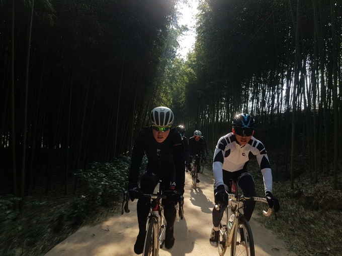▲지난 8일 전북 남원 동신스캇팀 초청으로 전국에서 모인 10대 라이더들이 점심라이딩으로 섬진강랠리 79.6km를 타고 있다. /최봉오 기자
