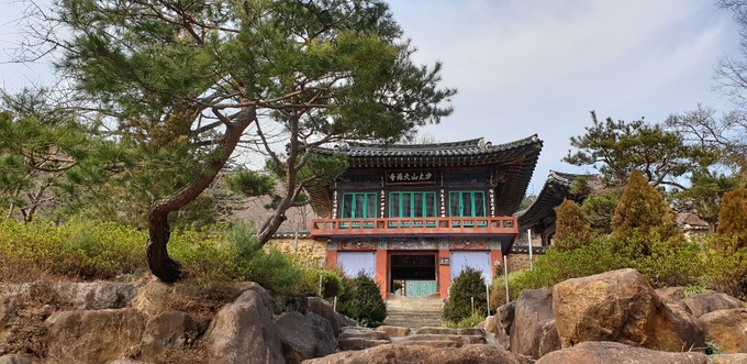 ▲지난 25일 오후 1시께 지리산 구대종주를 2박 3일간 68.8km 54시간 30분께 시간으로 완주한 전북 남원 동신스캇팀 박석규, 유규홍, 최봉오가 하산한 경남 산청군 대한불교조계종 대원사 전경. /이상선 기자