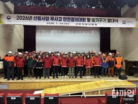 (산림청=타파인) 김진주 기자 = 숲가꾸기 사업의 본격 착수를 앞두고 산림 현장의 안전을 최우선 가치로 내건 결의의 장이 열렸다. 서부지방산림청은 14일 전북도인재개발원에서 ‘2026년 산림사업 안전결의대회 및 숲가꾸기 발대식’을 열고, 산림사업장 안전보건체계 강화와 무사고 사업장 달성을 공식 선언했다. 이날 발대식에는 국유림영림단장과 영림단원, 숲가꾸기 담당자 등 150여 명이 참석해 산림사업 재해 예방을 위한 안전실천 결의문을 낭독하며 현장 중심의 안전문화 정착을 다짐했다. 행사에서는 단순한 선언을 넘어 실제 사고를 줄이기 위한 교육도 병행됐다. 고용노동부와 한국산업안전보건공단 소속 전문강사가 초빙돼 영림단을 대상으로 안전사고 예방과 필수 안전수칙에 대한 집중 교육이 진행됐다. 서부지방산림청은 올해 120억 원이 넘는 예산을 투입해 5,600헥타르에 달하는 산림에서 조림지가꾸기와 큰나무가꾸기 등 숲가꾸기 사업을 추진할 계획이다. 산림의 공익적 가치와 지속가능성을 높이는 동시에, 작업 현장의 위험요인을 최소화하는 것이 핵심 목표다. 김인천 서부지방산림청장은 “산림 현장에서 단 한 건의 안전사고도 발생하지 않는 일터를 만드는 것이 무엇보다 중요하다”며, “산