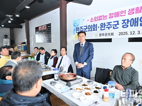(완주=타파인) 이상선 기자 = 완주군의회(의장 유의식)가 지난 3일 완주 용진읍 한 음식점에서 완주군 장애인연합회와 오찬 간담회를 갖고 지역 장애인의 권익증진과 복지정책 개선을 위한 현장의 목소리를 폭넓게 청취했다. 이날 간담회에는 유 의장을 비롯한 군의원 11명 전원, 관련 부서 공무원, 김덕연 완주군 장애인연합회장 등 30여 명이 참석해 장애인 복지 전반에 걸친 다양한 현안을 논의했다. 현장에서 제기된 주요 건의사항은 ▲장애인 이동편의 증진과 교통 접근성 개선 ▲체육·문화 활동 참여 기회 확대 ▲생활 기반시설의 장애 친화적 설계·개선 ▲직업재활 및 지역 내 고용 확대 ▲지역사회 내 차별 해소와 인식 개선 교육 강화 등으로, 군의회는 이를 조례 제·개정, 예산 반영, 집행부 협업 등을 통해 단계적으로 개선해 나가겠다고 밝혔다. 유의식 의장은 “장애인의 권익은 완주군이 지켜야 할 기본 가치이며, 당사자들이 실질적으로 체감할 수 있는 정책이 무엇보다 중요하다”며, “오늘 제기된 의견들을 의회가 책임 있게 검토해 실효성 있는 대안을 마련하겠다”고 말했다. 이어 “완주는 누구도 소외되지 않는 공동체를 지향한다. 앞으로도 장애인단체와의 정기적 소통을 통해 지속적으