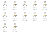 ▲2019년 1월 9일 날씨 예보./다음 누리집 갈무리. 8일 전주기상지청에 따르면 9일 대체로 맑겠으나 서해안은 구름이 많고 새벽 한때 눈이 날리겠다. 특히 동부 내륙 아침 기온은 영하 10도 내외로 떨어지고 바람도 강해 매우 춥겠다. 이날 아침 최저기온은 무주 영하 13도, 진안 영하 12도, 장수 영하 11도, 완주와 임실 영하 10도, 남원과 익산은 영하 8도, 전주와 순창, 정읍, 군산, 김제, 부안은 영하 7도, 고창 영하 6도로 전날보다 기온이 큰 폭으로 떨어지겠다. 낮 최고 기온은 남원과 진안 영상 4도, 완주와 임실 3도, 전주와 무주, 진안, 익산은 2도, 정읍과, 군산, 김제, 부안, 고창이 1도 등 영상권을 회복하겠으나 전날보다 낮겠다. 10일 아침 최저기온은 영하 8도에서 영하 4도, 낮 최고 기온은 영상 3도에서 5도로 전날보다 조금 높겠다.