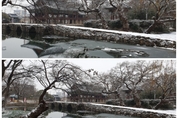 ▲지난 11일 오전 11시께 전북 남원시 광한루에 눈이 내리고 있다. /이상선 기자당분간 평년보다 추운 날씨가 이어질 것으로 보인다. 특히 오늘 내린 눈과 비가 얼어 미끄러운 곳이 많을 것으로 보여 주의가 필요하다. 13일 전주기상지청에 따르면 내일(14일) 대체로 맑다가 서해안에 가끔 구름이 많겠고 일부 전북남부서해안지역에는 새벽부터 아침사이 눈이 조금 오겠다. 기온은 모레까지 평년보다 2~5도 정도 낮겠고 바람이 강하게 불어 체감온도가 낮아 매우 춥겠다. 특히 13일 내린 눈 또는 비가 밤사이 얼어 도로에 결빙구간이 있을 수 있겠으니 교통안전과 보행자 안전에 유의를 당부했다. 내일 아침 최저 기온은 남원과 익산, 고창이 영하 6도, 무주 영하 12도, 진안과 장수 영하 10도, 완주 영하 7도, 전주와 순창, 정읍, 군산, 김제, 부안이 영하 5도로 예보했다. 낮 최고 기온은 남원과 순창이 영상 4도, 전주와 완주, 임실, 익산, 군산, 김제, 부안, 고창이 3도, 무주와 진안, 장수, 정읍이 2도 분포를 보이겠다. 토요일인 15일 아침 최저 기온은 영하 12도에서 영하 5도 분포로 전날과 비슷하겠고 낮 최고 기온은 영상 5도에서 영상 7도로 전날보다 조
